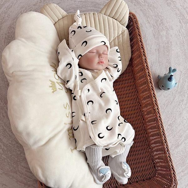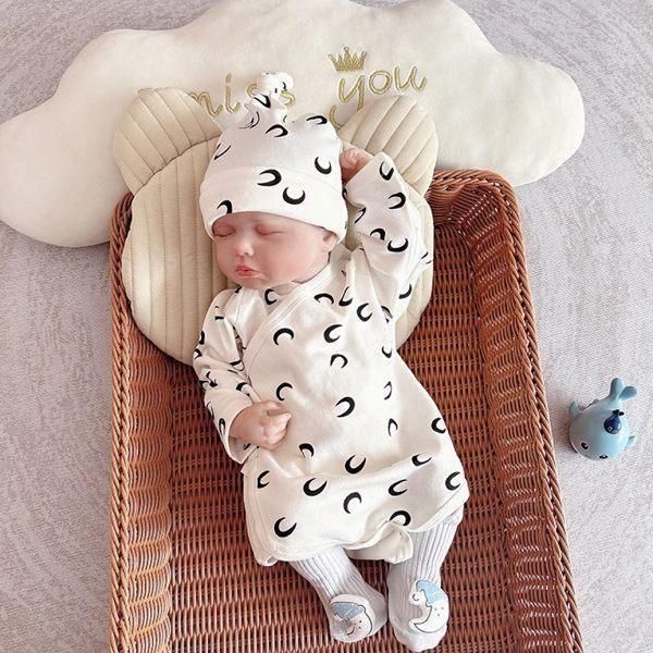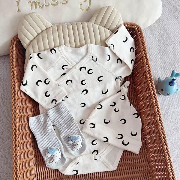 三日月柄がおしゃれな帽子&ソックスつきの3点セット!