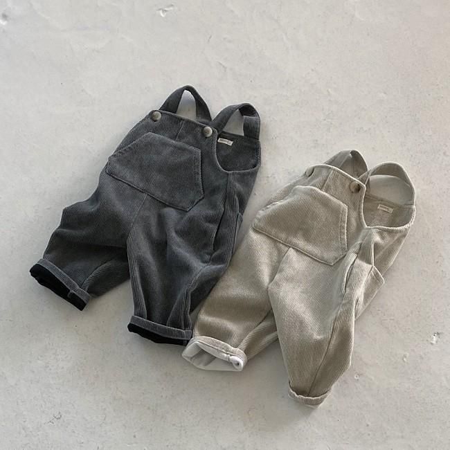 ポケットと大き目ボタンがかわいいサスペンダーパンツ!